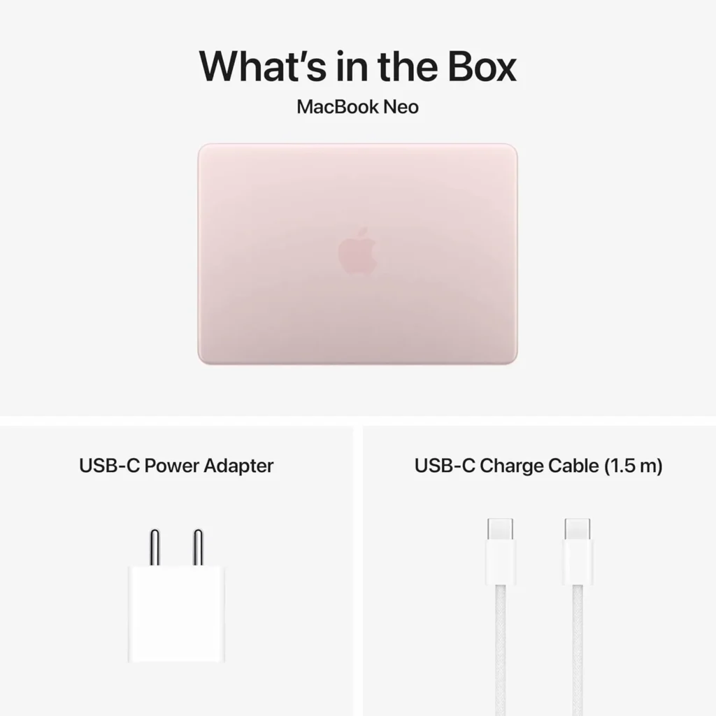 The MacBook Neo follows Apple’s minimal design language. Lightweight, compact, and easy to carry, it is ideal for travel and daily use.
