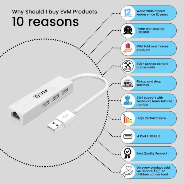 USB 2.0 to 3xUSB 2.0 and RJ45 Ethernet adapter (10/100Mbps). Bus-powered design requires no external power supply. Supports full and half-duplex transmission. Ideal for adding network connectivity to desktop and laptop computers.