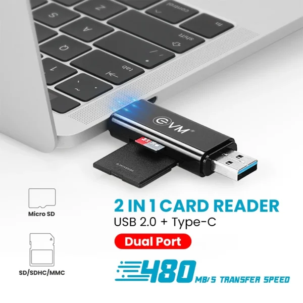 Dual Interface: USB-A (PC) + USB Type-C (Mobile/MacBook)OTG Support: Connect directly to Android Phones & TabletsSlots: SD & Micro SDConvenience: Plug & Play, No drivers needed