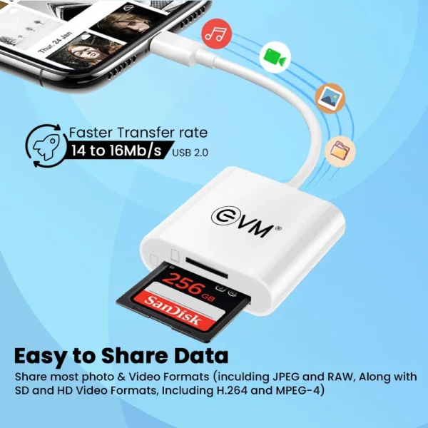Connector: Lightning (iOS)Slots: SD and Micro SDFunction: Direct Photo/Video Backup for iPhone/iPadMaterial: Premium Zinc/Alloy Finish